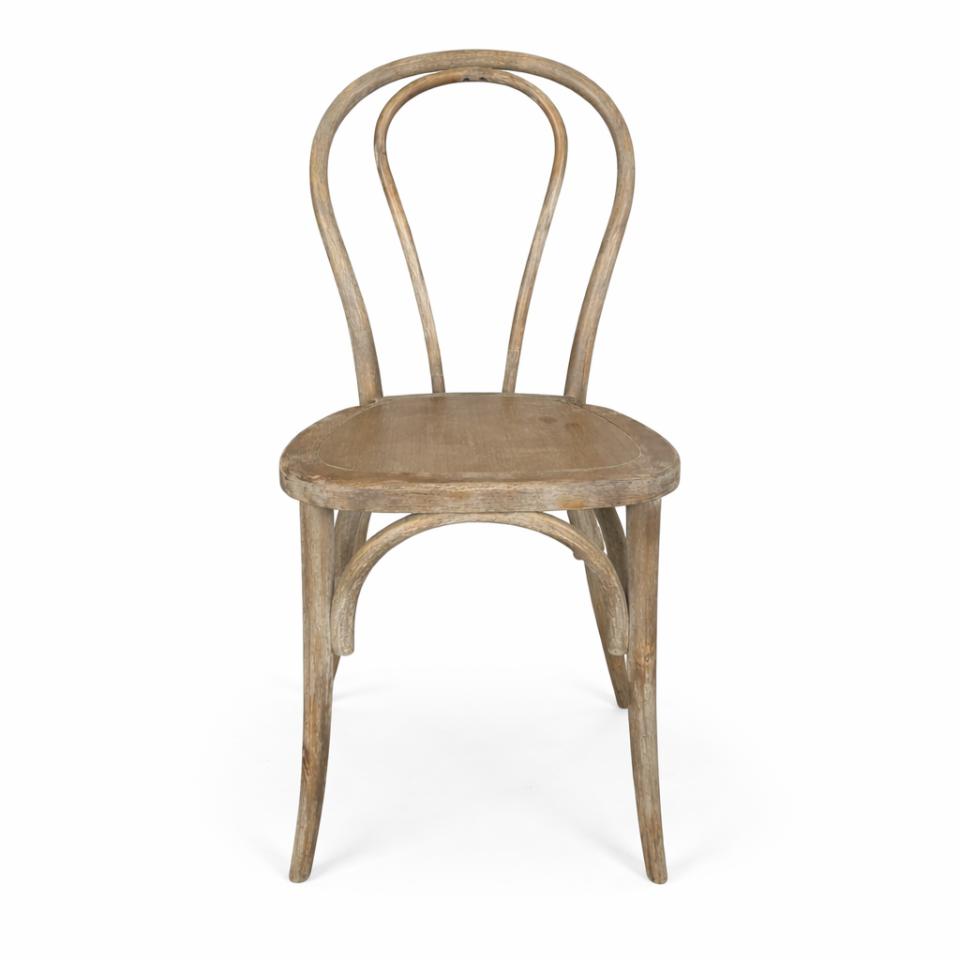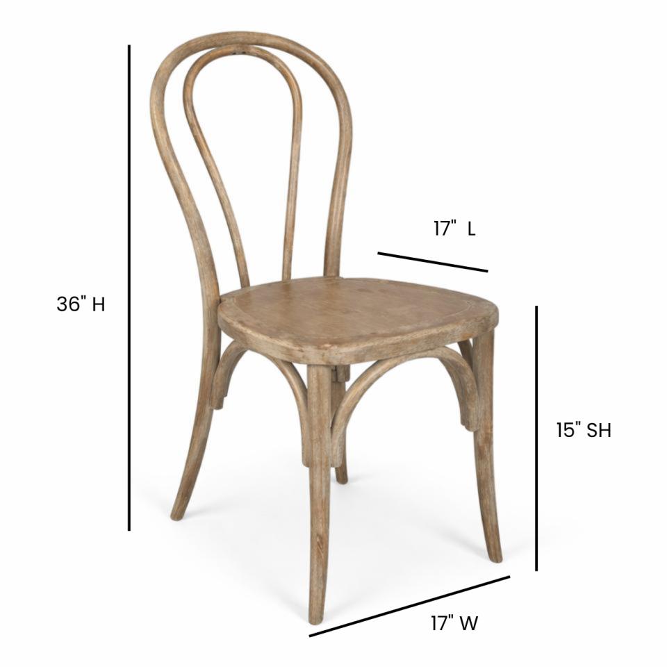 Crafted from solid elm wood, this café-style chair features a wire-brushed mocha brown finish with subtle hints of grey for a warm, dimensional look.