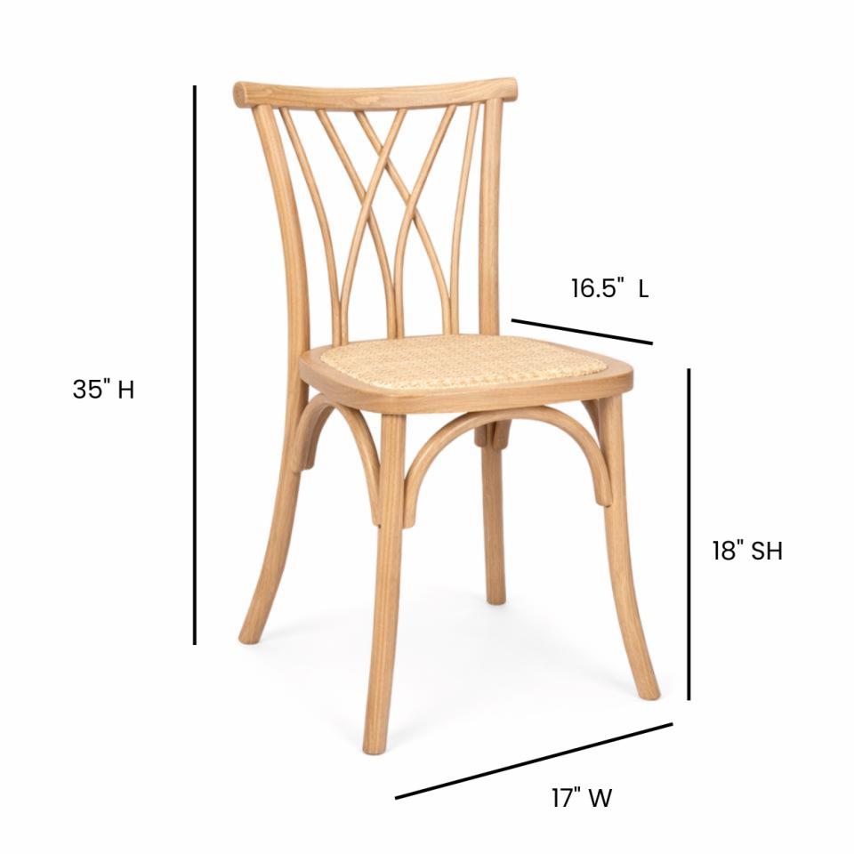 Blonde wood dining chair with rattan seat