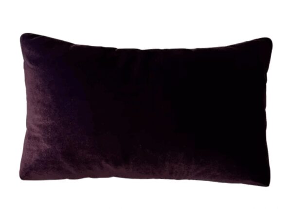 Deep bordeaux red/purple velvet upholstered bolster pillow.