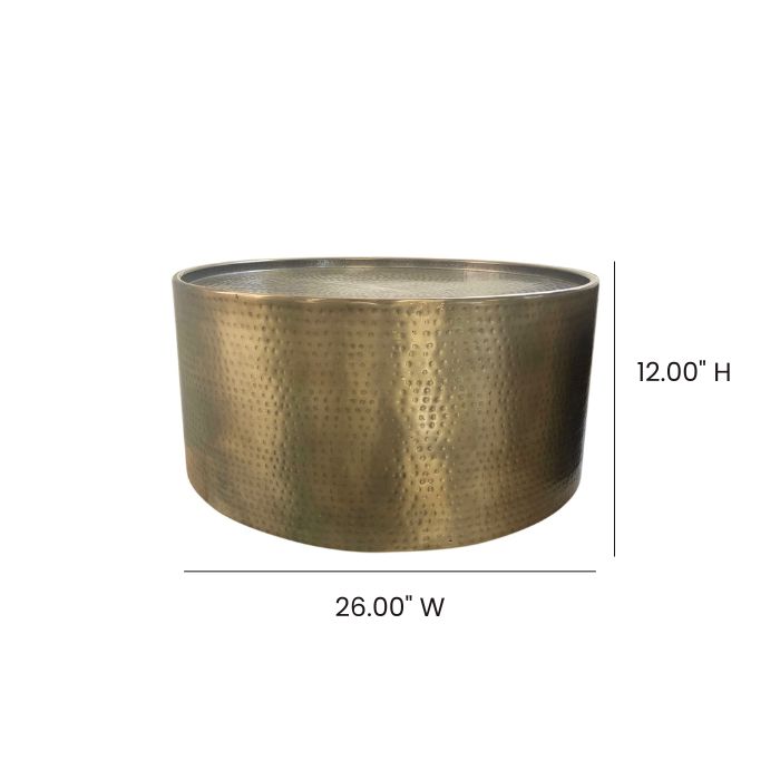 Hammered brass metal drum table.