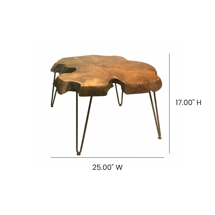 Wood slab table with hairpin legs. Note, these tables have natural variations.