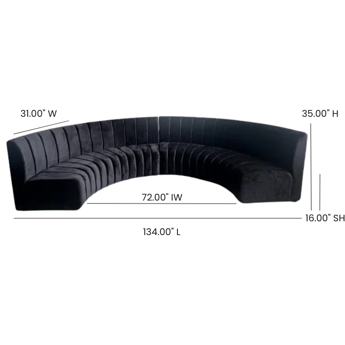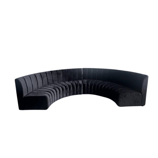 Half circle banquette sofa (2 pcs), black channel back tufted fabric.