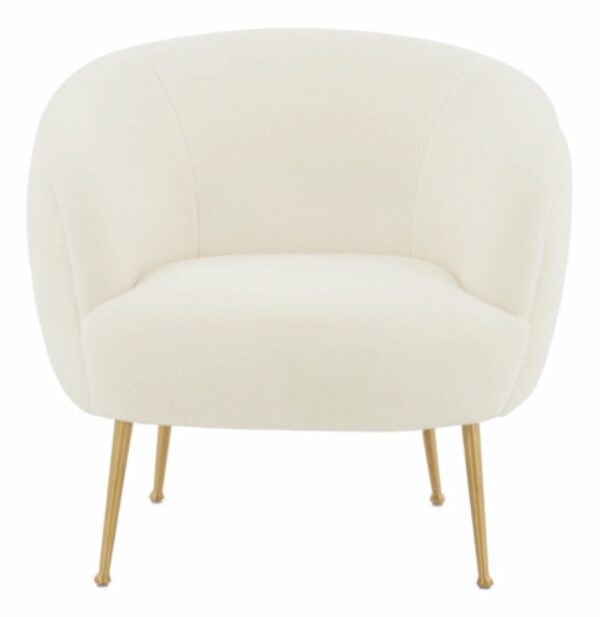Faux sheepskin barrel chair with brushed gold legs.