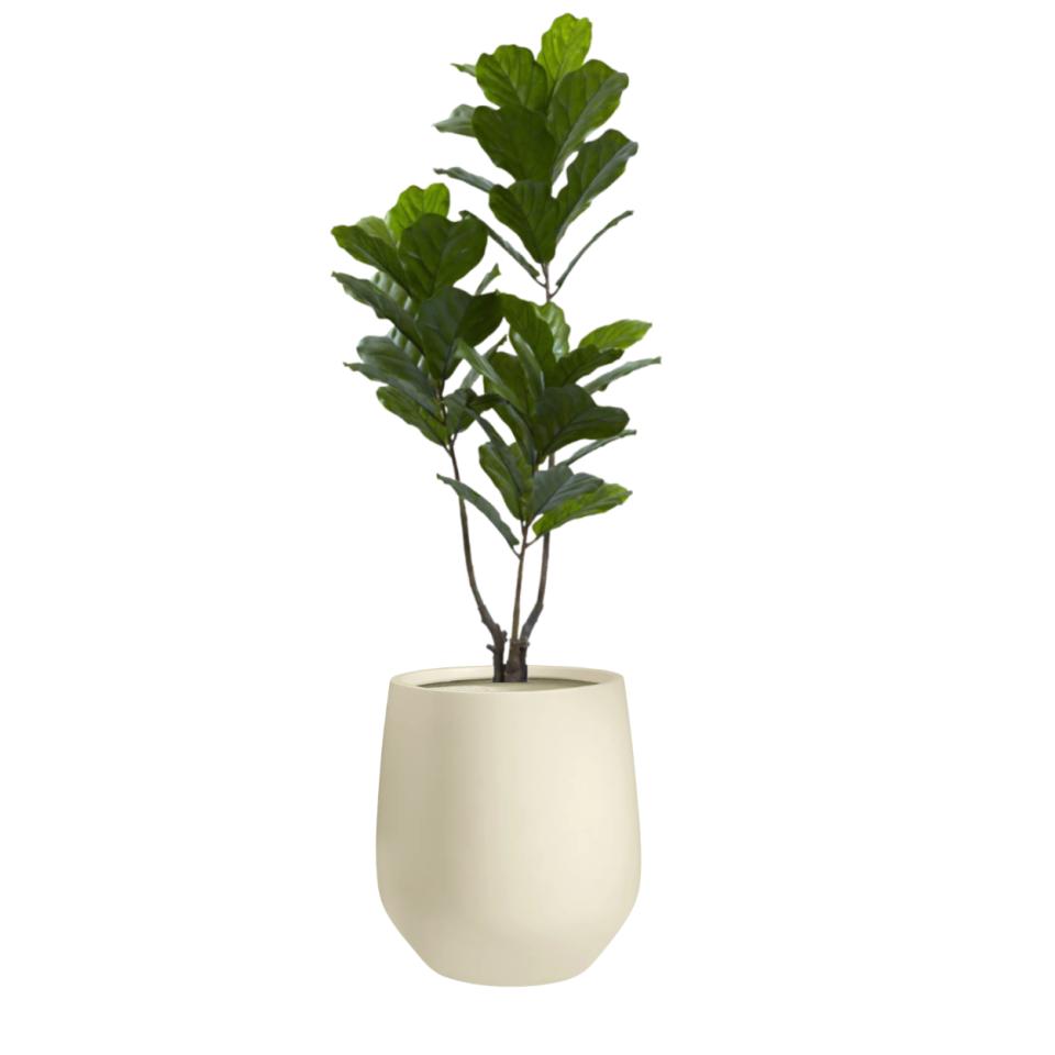 A vibrant addition to any event, this life-like faux Fiddle Leaf Fig Tree is housed in a large fiber-stone planter with varied moss atop. You can customize the look by selecting either a charcoal or linen finish for the container to match your decor.