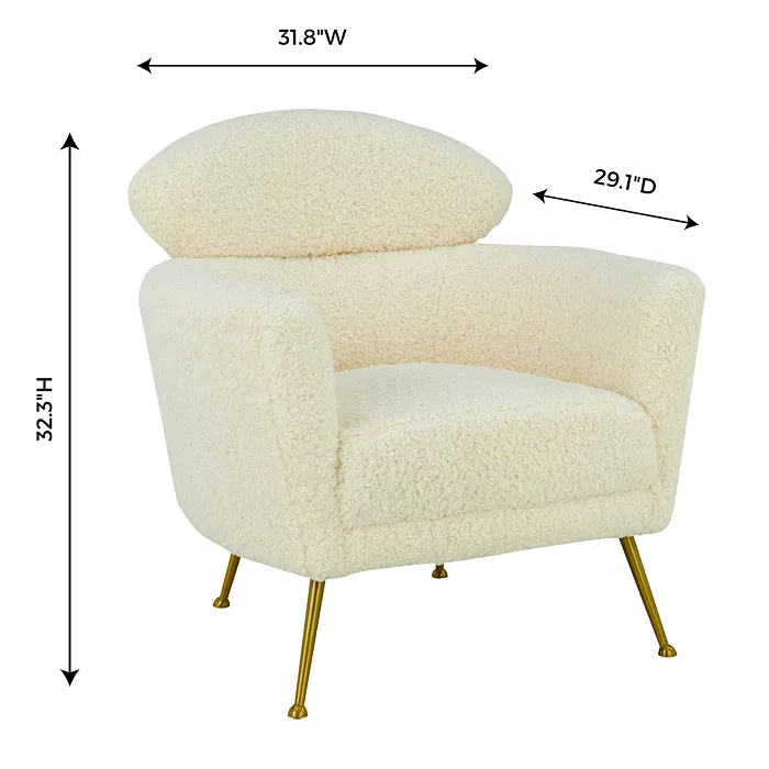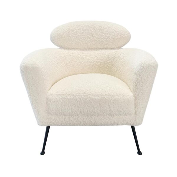 Modern chair wrapped in luxe boucle upholstery and matte black legs.