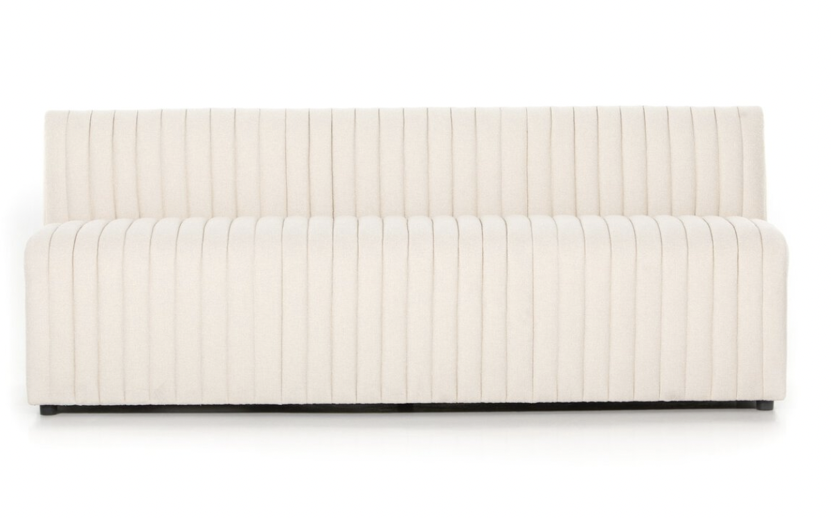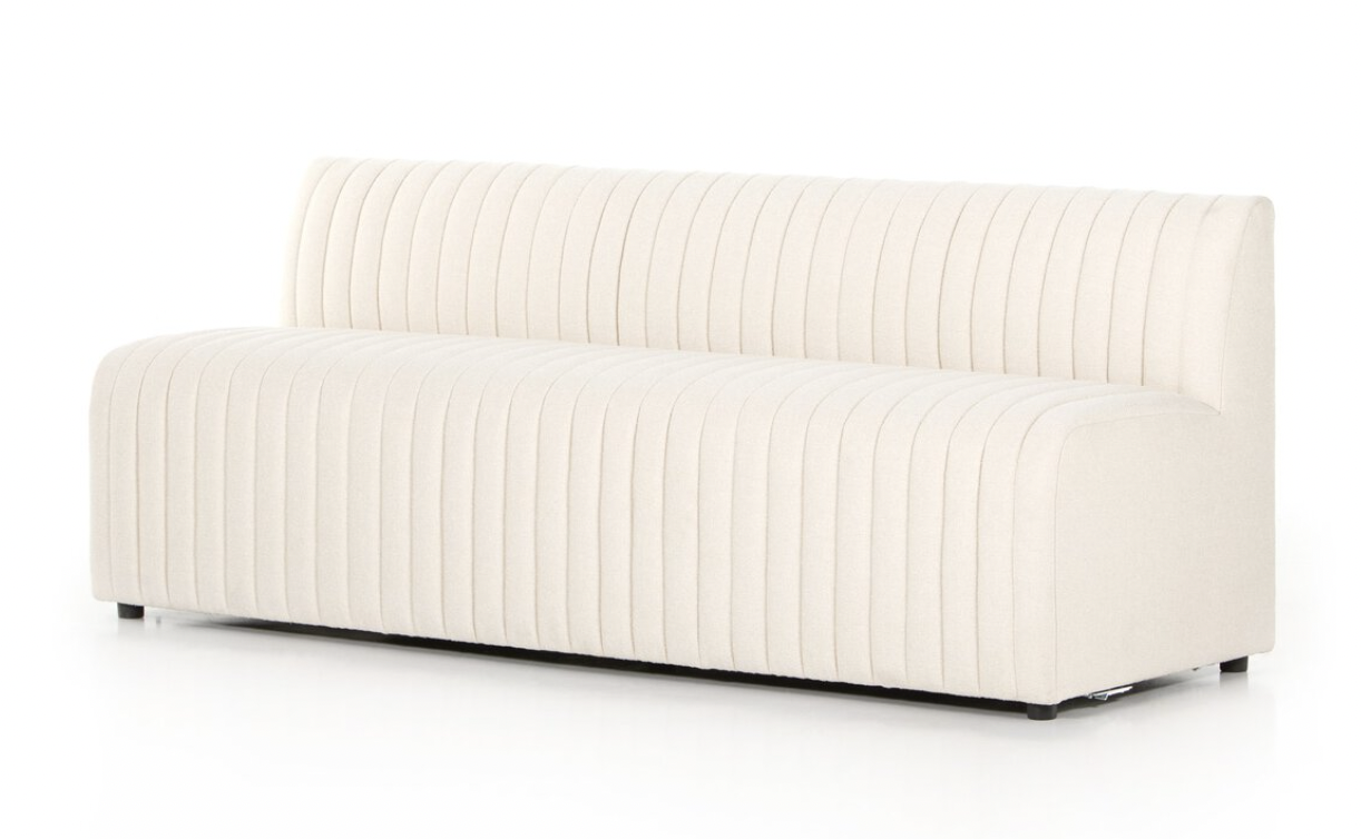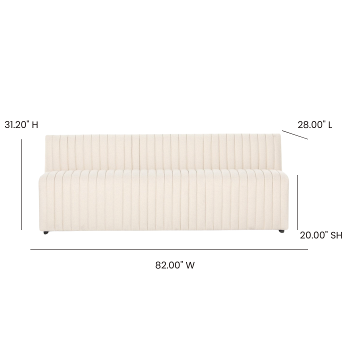 Ivory tuffed banquette, perfect for dining or lounge seating. 82 x 28 x 31.5