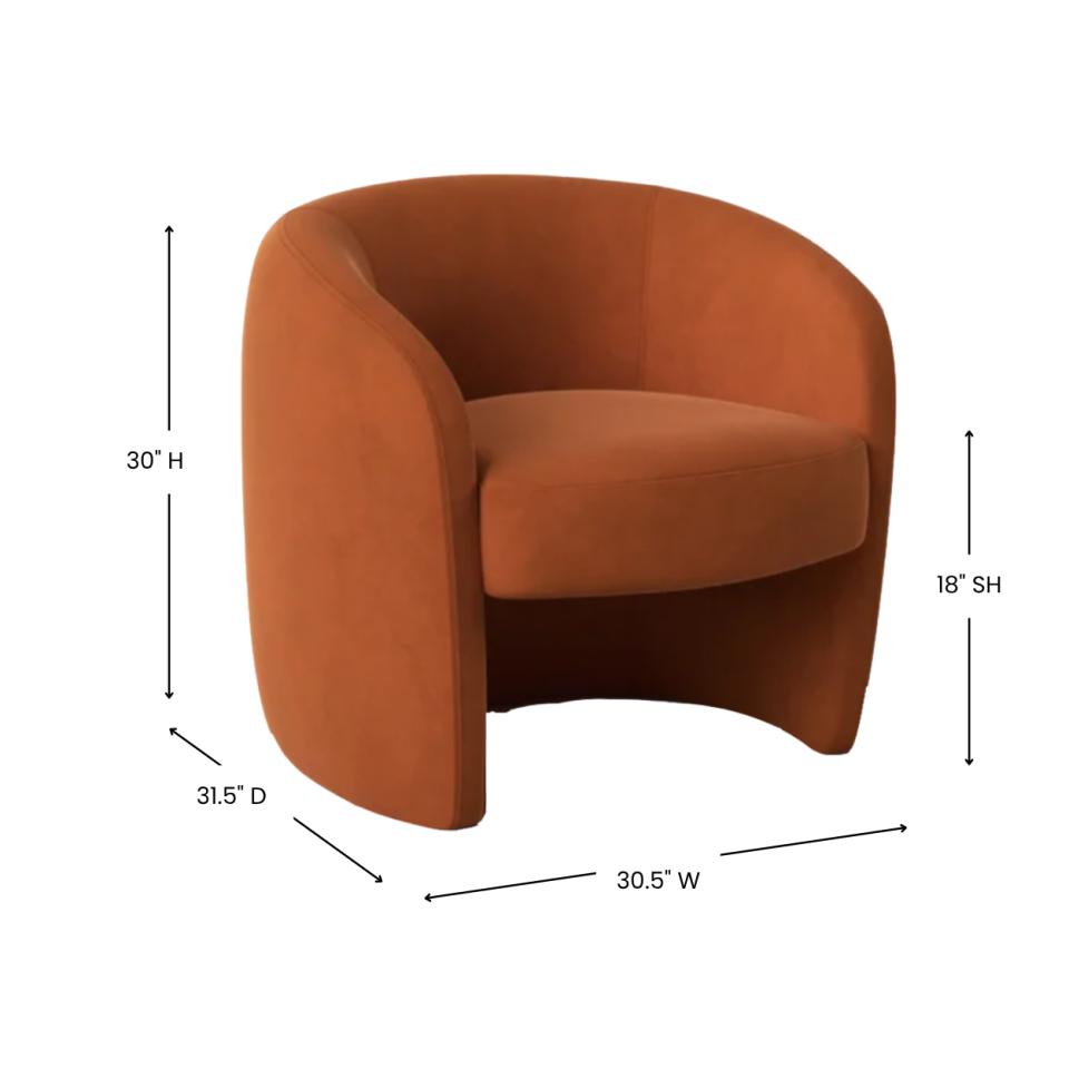 Rust colored velvet barrel chair