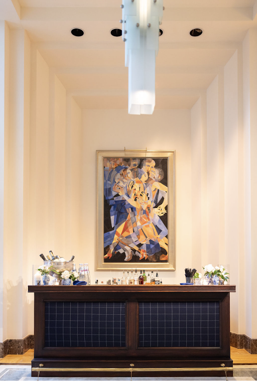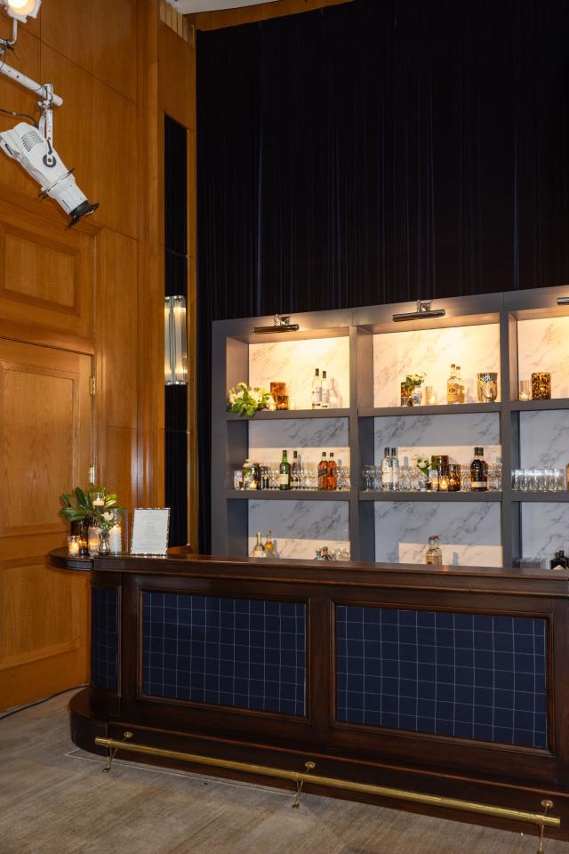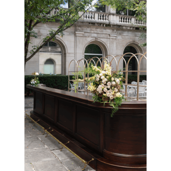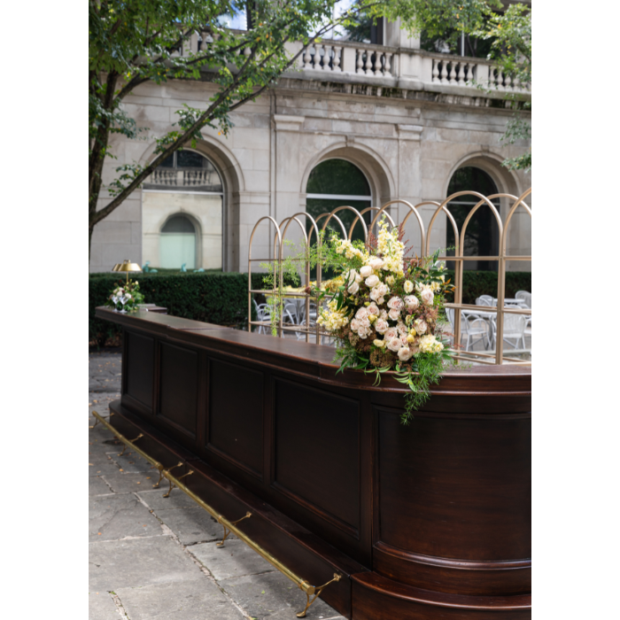 This mahogany bar listing includes three pieces: two corner units and one long center section. Custom configurations are available upon request.