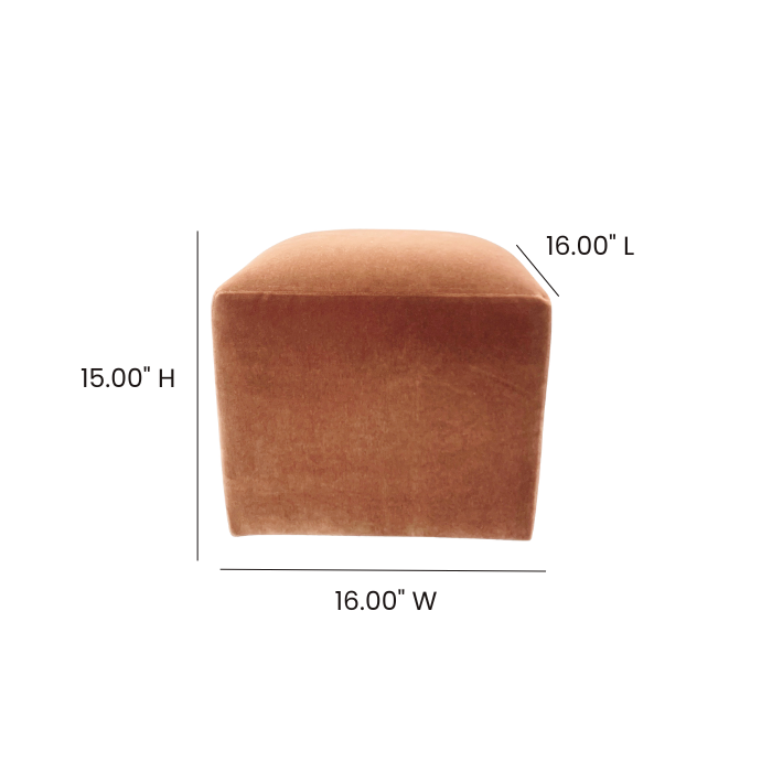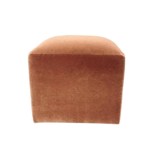 Petite rust copper colored mohair velvet cube ottoman.