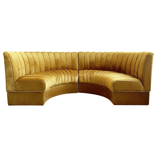 2 piece gold banquette with velvet fabric, channel back.