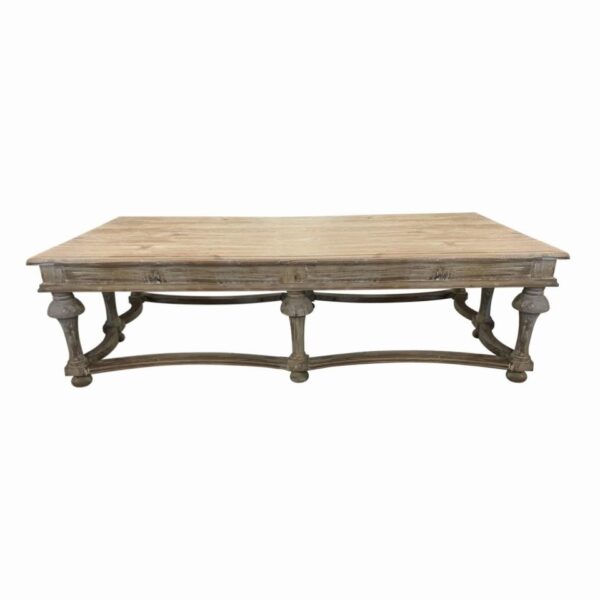 Bleached wood oversized coffee table, makes for a great picnic or lounge table.