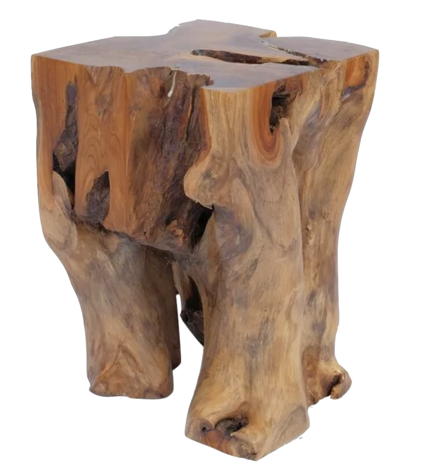 Solid teak stool with natural shape.