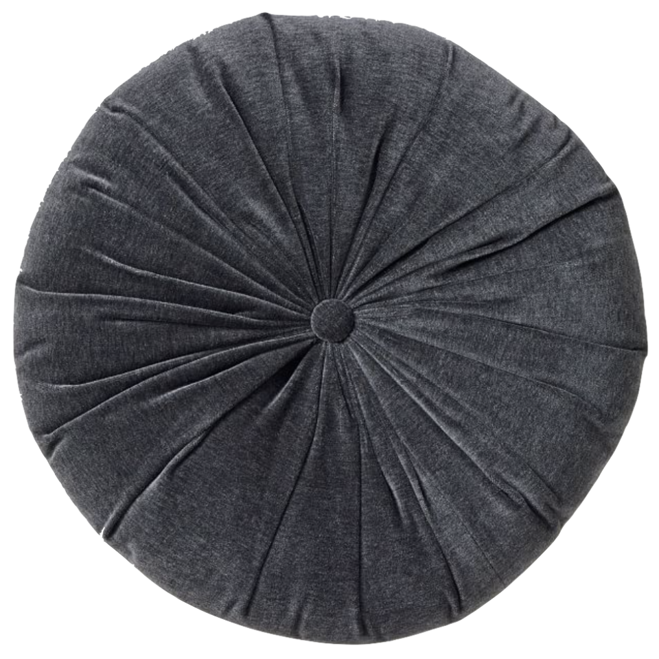 Dark slate blue velvet round pillow.