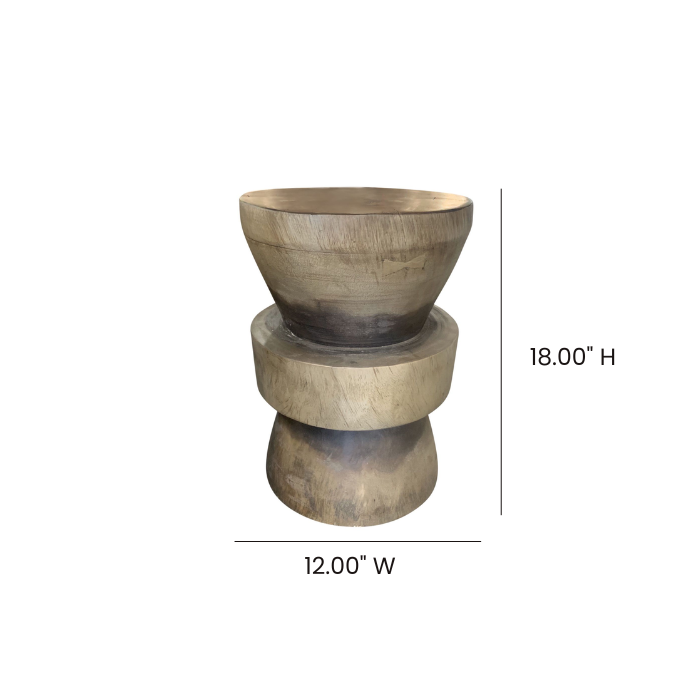 Solid acacia wood table/stool in a grey finish.